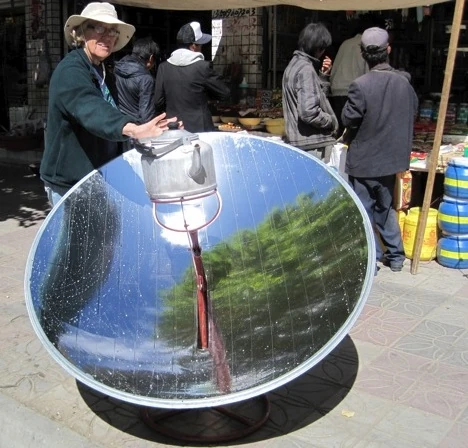 - J'ai préparé un cuiseur solaire de 400 grammes (type "sac à dos") et une cuisinière parabolique pliante de 3 kg (1 m de diamètre) pour les randonnées ou les expédition en groupes et pour les ménages ruraux éloignés.