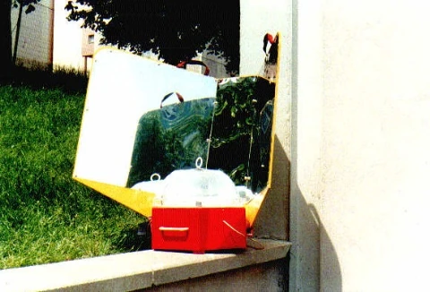 Cuiseur solaire portatif, un cuiseur de type à panneaux réfléchissants (prototype BKK-30) développé en 2001 par Andrew et Sophie Kotowski permet de cuire de la viande, de la volaille et du poisson. Il est léger, démontable et facile à transporter.