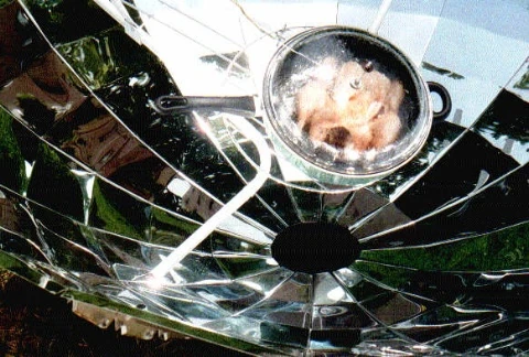 Cuisinière solaire multifonctions de grande puissance, la cuisinière solaire de type parabolique (prototype CGP-140) développée, réalisée et testée en 2001 par Sophie et Andrew permet la cuisson, la friture, la pasteurisation et la stérilisation. Elle est démontable et facile à transporter.
