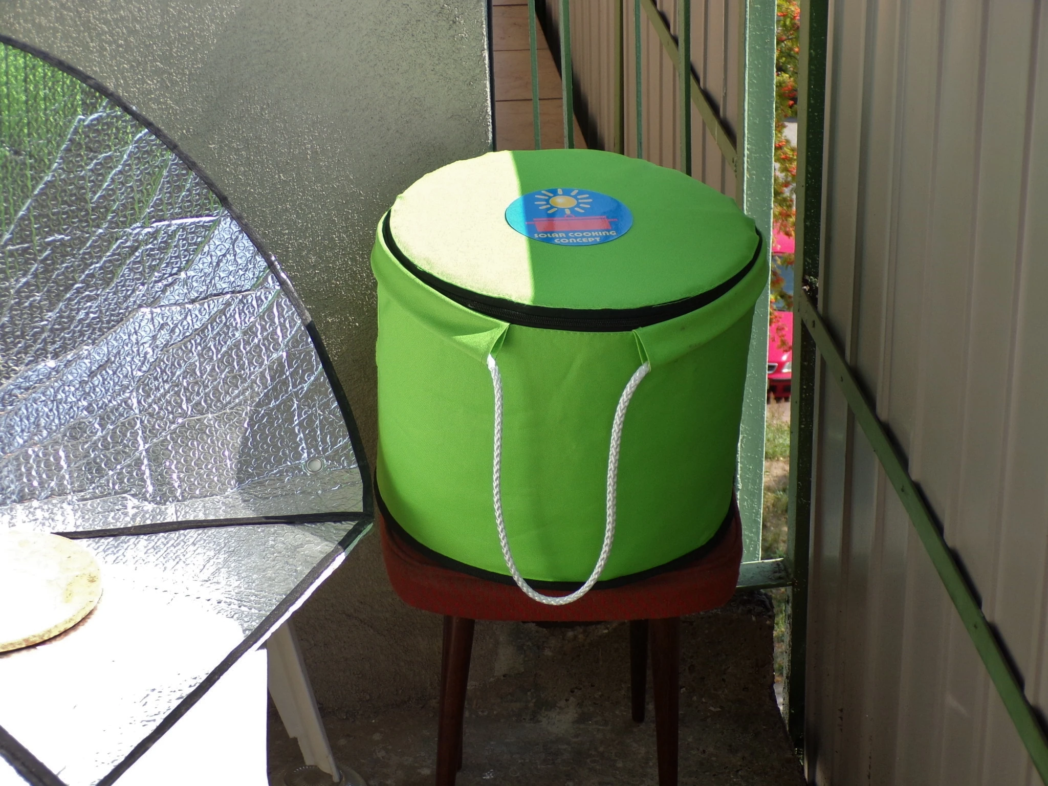 Dans ce cas, l'ébullition initial a lieu dans un cuiseur solaire. Nous avons utilisé à cet effet notre cuiseur solaire UltraLightCooker Scout équipé d'un pot solaire. Après la cuisson initiale, le pot solaire est retiré du cuiseur, placé dans lecuiseur thermos et laissé le temps nécessaire pour terminer la cuisson.