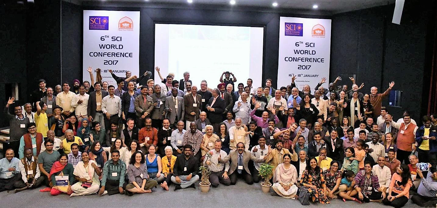 The 6th SCI World Conference 2017 was held 16-18 January 2017 at the Muni Seva Ashram in Goraj, Vadodara, Gujarat, India. During the conference, over 200 participants from 30 countries presented and attended 58 presentations on eight different topics. The gathering broke new ground as it advanced solar cooking globally through new connections, information-sharing, and feedback on new projects in the solar cooking community.
