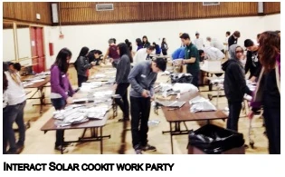 - March 2014: Afghan refugees let the sunshine in - Thanks to the passion of volunteer Jack Howell, Trust in Education (TIE) initiated a solar oven project in 2010. TIE started with five solar cookers made by Jack, and deliverd them to Afghanistan in August 2010. That's how it all began. On February 8, 2014 over 60 students from five Bay Area, California high schools joined TIE to build CooKit solar cookers. They are part of the over 100 high schools with Interact Clubs fro District 5170. The district plans on providing 5,170 CooKits to Afghan refugee families. Assuming an average of ten members per family, that makes 50,000 people who will be introduced to solar cooking as a result. TIE already has 500 solar cookers in refugee camps, and has requests for more.