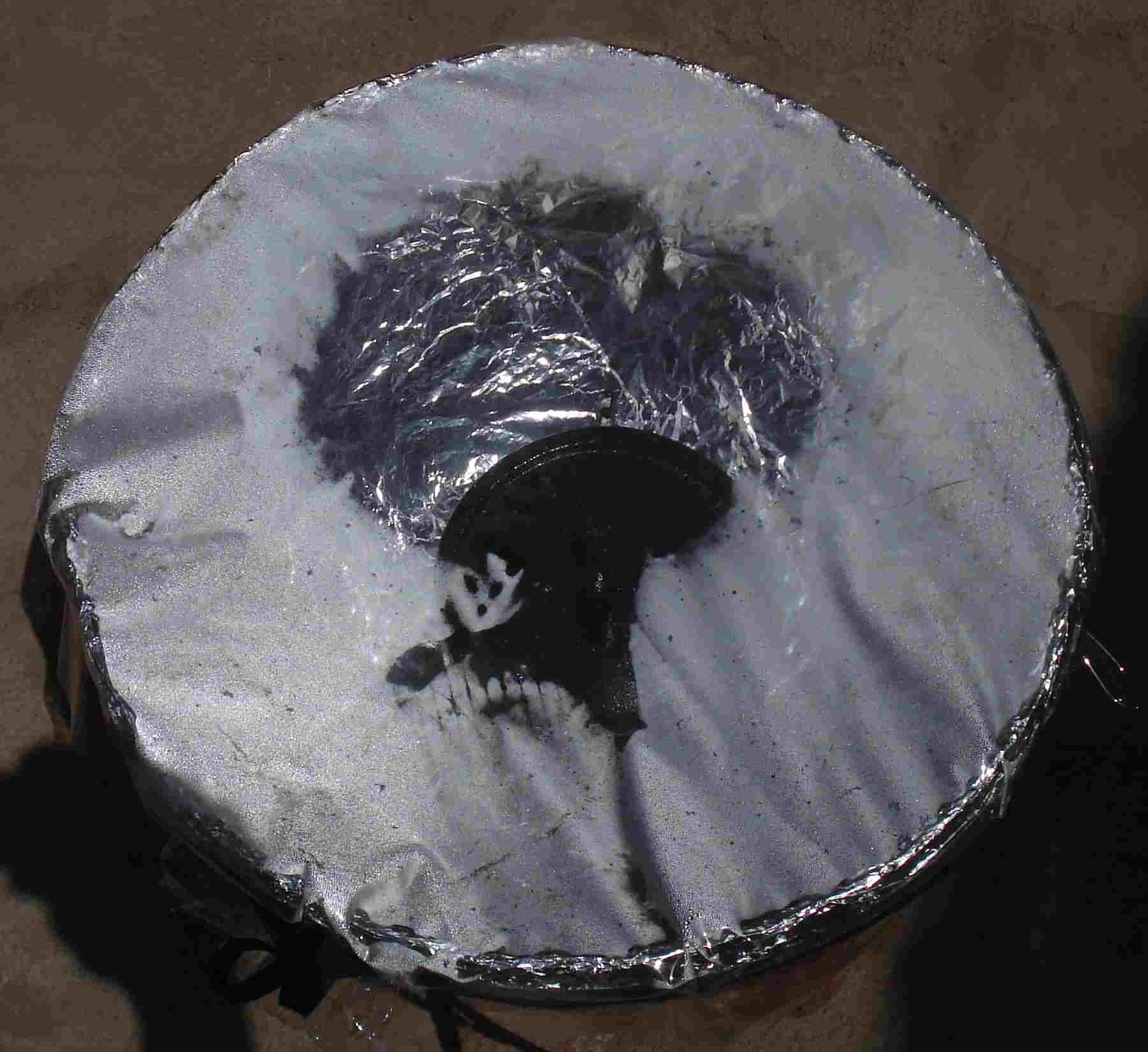 - February 2008: In February of 2008 another trip to Darfur allowed more time to develop and test the Borma cooker. A new one was made and reached 250° while cooking and even melted a hole the the autoclave cover. We gave the cooker a local Arabic name "Tabakna el Shemse" which means "Our Solar Oven." This is because the Darfur women are already familiar with the Borma as a water pot and it has an established place in their homes. More long term testing is being done in Nyala, Darfur for possible future production of the Borma cooker.