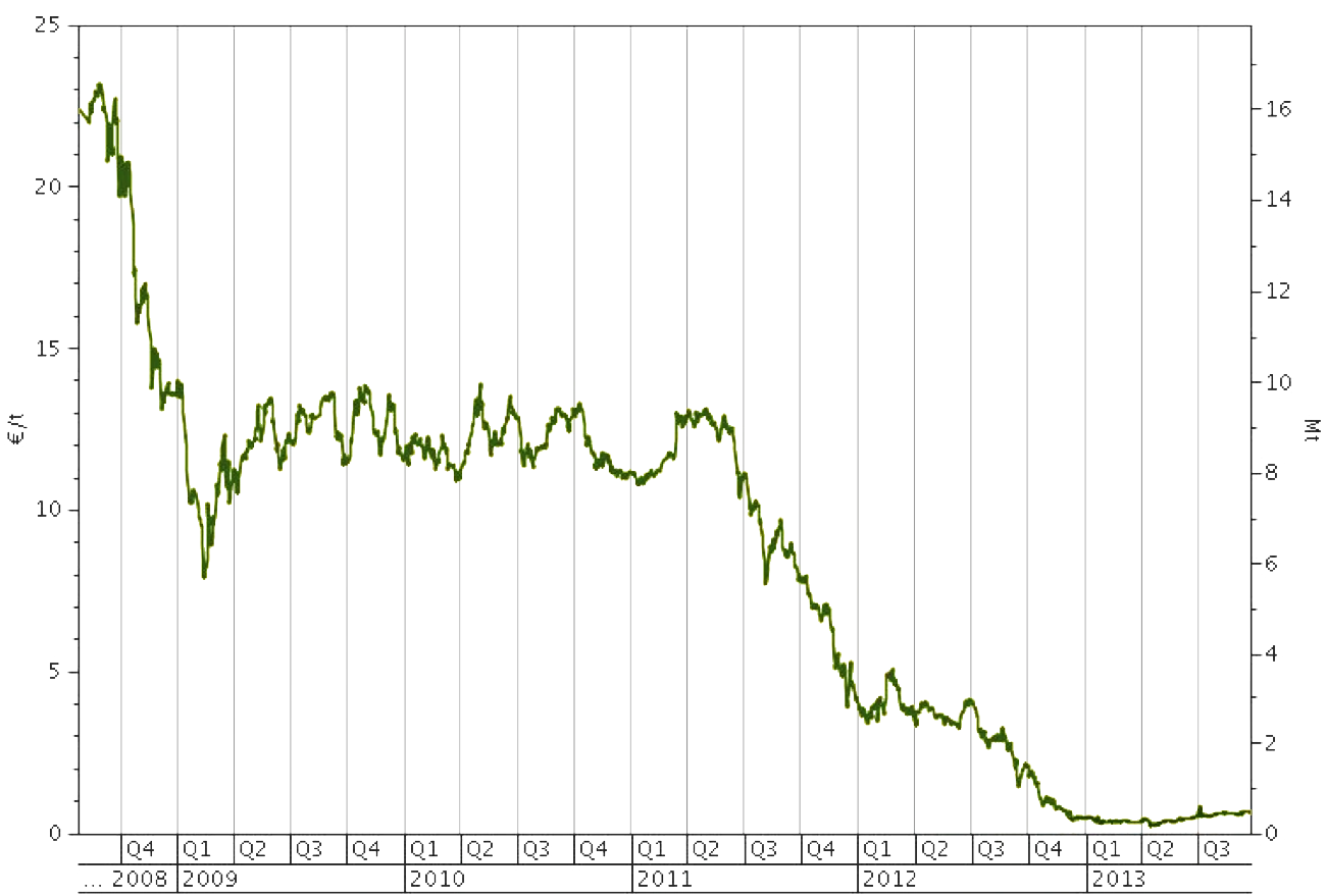 • October 2016: The price offered for Carbon Credits has fallen sharply over recent years.