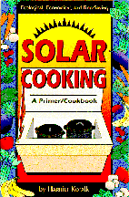 A 96-page book of natural vegetarian recipes. Contains 24 pages of background including construction plans and cooking tips. Barbara Kerr, the inventor of the cardboard solar box cooker writes of the book, "The combination of the enhanced flavor of solar-cooked foods and Harriet's lovely, carefully balanced recipes is a total win!"