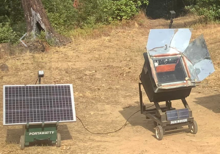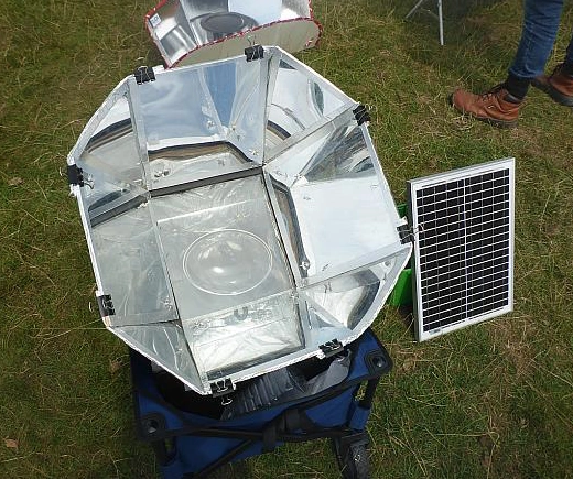 August 2019: Cooking with PV and phase change materials in place of a battery - Pete Schwartz explains how his research group at Cal Poly, USA is using a relatively low power photovoltaic panel to produce electricity to run an induction heating element, which runs through a phase changing heat storage medium. The medium melts at 120 °C (248 °F) during exposure throughout the day. In the evening the medium is hot enough to cook a meal fairly quickly without the sun, stored battery power, or further input from the induction heating element.
