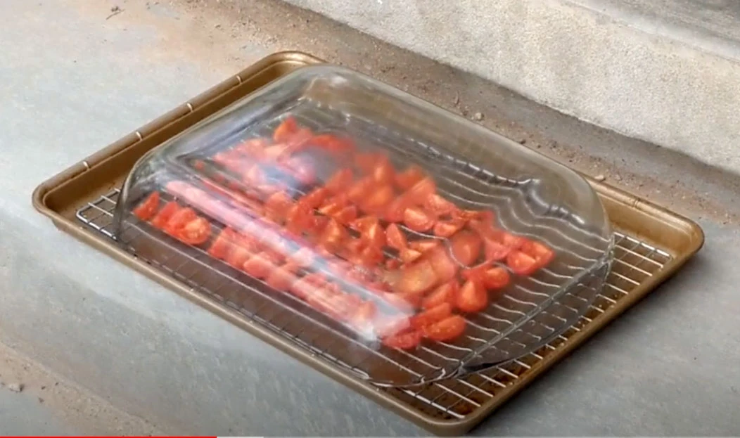 - April 2022: A simple solar food dryer - Sarah Mitchell of Utah, USA, showed Luther Krueger during a video interview her approach to creating a solar food dryer from items she already had in her kitchen. Using a cookie sheet as a base, she added a standard cooling rack, and then a Pyrex baking dish as a cover. Simple and effective.