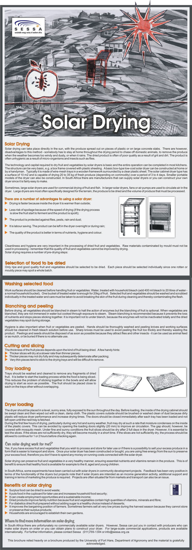 - Solar Drying - presented by David Whitfield at the International Conference on Solar Cooking in Kimberly, South Africa, in 2000 (PDF version here)