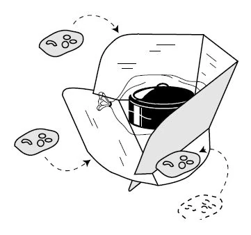 Set the CooKit on a dry, level surface in direct sunshine away from potential shadows. For best results, solar cooking requires continuous, direct sunshine throughout the cooking period.