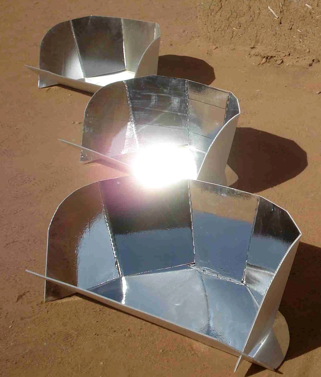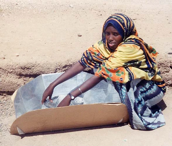 Mr. Diassana also applies creative thinking to obtain low-cost materials. He notes that tea, a very popular beverage in Mali, is shipped from China in boxes lined with aluminum foil which can be recovered and reused for making reflectors for solar cookers. “It works well,” he says.