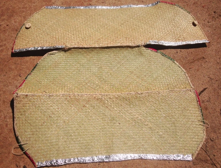 This CooKit variation makes use of local materials to create a very affordable cooker. It was designed by Dominique Dutoit for use in Madagascar. The panels are constructed from woven grass mats, and then covered in reflective material. The target is to make the cookers for less than USD 2.00 and be able to offer them through local retail stores.