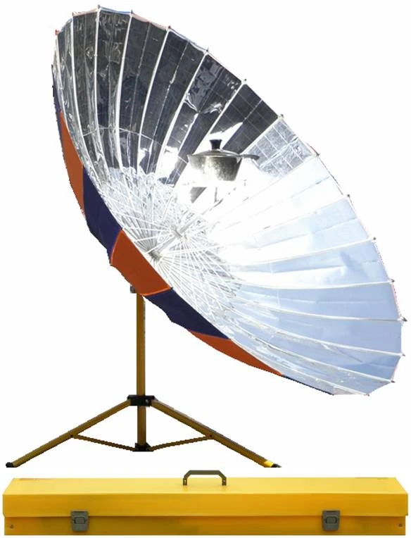 The CookAway16 has a reflector diameter of 1.6 m and, according to the manufacturer, has a net performance value of about 500 W for cooked foods.