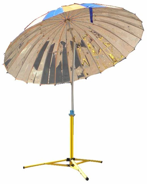 Solar cooker and parasol in one - assembled and modified into a parasol within a minute.