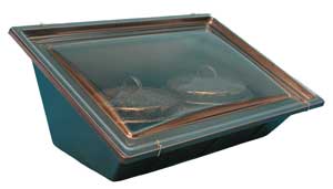 The Sport is designed to cook in two positions: a 60-degree slant for a lower angle sun, (winter) and a 30-degree slant for direct, overhead sun, (summer).