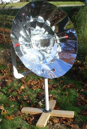The EB800D Solar Cooker is a parabolic solar cooker designed by William Bradley, founder of Earthbound Technology. According to the designer, it is a new type of solar cooker that is easier and less labor intensive to build than most parabolic cookers. The EB800D is primarily a multi-sided parabolic with the outermost portion of the parabola replaced with a conic section, and built using the nomenclature of the metric system to add individuals more familiar using metric. The design is quite similar to the Hypar Solar Cooker, also designed by Earthbound Technology.