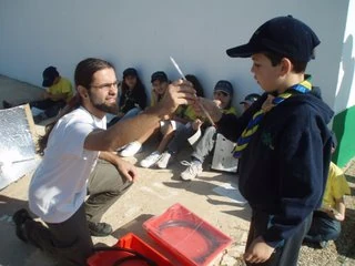 I've started exploring the solar cooking technology potencial as a tool in science education, mainly as an excelent way of showing how empirically gained knowledge could turn into bright technologies if we pay attention to them. That happened during the summer of 2005, as I had the opportunity of creating a summer solar cooker workshop series for 6 to 12 years old children, in Centro Ciência Viva de Tavira, where I've worked. Since then, I have done regular workshops for families, students, scouts, or just curious people.