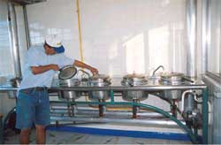 - January 2009: Gaviotas features a community dining hall that is very popular with the villagers. Its kitchen makes about 200 meals a day. The massive cooking stoves have now been equipped with internal piping through which water is heated to near boiling and is then circulated without a pump, simply via natural convection (thermosiphon). This new heat exchange system replaces the 30 solar collectors that used to sit on the roof of the dining hall. The old collectors (also thermosiphon with no moving parts) are still in top shape, so they will simply get a new paint job and be sold for $1,000 a piece![1]