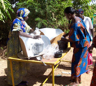 The KoZon Foundation began introducing solar CooKits in Gorom-Gorom, Oudalan in 1997. As is often the case, initial acceptance was very high. To measure long-term acceptance and usage, KoZon surveyed more than 50 families multiple times from 2002-2005. During the dry season, lasting from March-June, 30-45% of the families used their CooKits regularly (approximately 3-7 times per week). The month of April had highest usage, followed by May and March respectively. CooKits were used to cook a variety of foods, especially rice and sauces of meat, chicken or legumes. Nearly all families rated food taste as good to very good. CooKits were also used to heat milk for making yoghurt, and to heat water for making tea and coffee, as well as for washing purposes. Several families said that the capacity of one CooKit was not enough for large families, and that two CooKits would be better. Durability of the cooker was also mentioned as a concern, given that the cost of a CooKit and a cooking pot is 5000 to 7500 CFA franc, or about $10 to $15. Even though this is quite expensive for the families of Gorom-Gorom, each solar-cooked meal saved an estimated 50-180 CFA in fuel costs. Over 90% of the families said they planned to buy a replacement CooKit when theirs wears out. KoZon lists several lessons learned during this process, including: 1) One CooKit is best suited for families of less than six members, or for single male households; 2) Complementary technologies, such as fuel-efficient wood stoves and heat-retention cookers, should continue to be taught in addition to solar cookers; and 3) Ongoing guidance, encouragement and follow-up should be provided by trained members of local institutions.