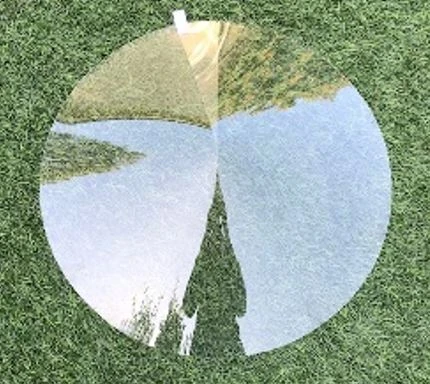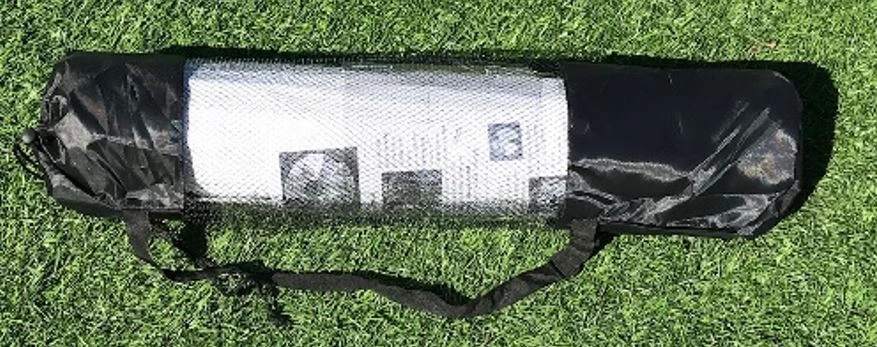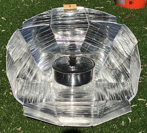 The reflector is made from the same MPET (metalized polyester foam) material that Haines uses for all his solar cookers. This material has the right combination of flexibility, stiffness and durability to hold its shape, even in breezy conditions.