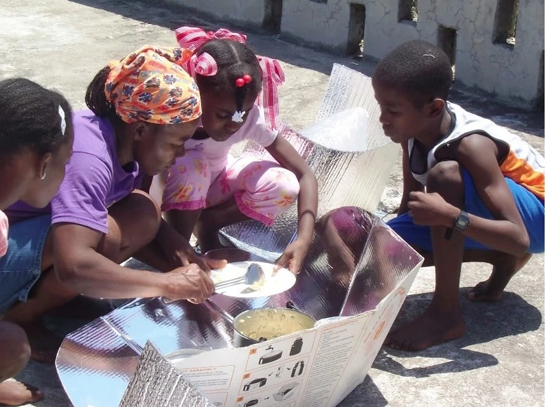 January 2011: Haiti - One year later: Haiti continues to benefit from solar cooking. Solar Cookers International (SCI) and International Child Care Ministries (ICCM) are working to expand a project in the schools around Port Au Prince to integrate solar cooking into the 5th grade science curriculum. The goal is that each student will receive a CooKit to use each day in preparing and cooking their lunch, all the time learning about science. Training and certification of teachers continues, as do SCI’s efforts to secure funding to provide 2000 more CooKits for this school project. To date, SCI has provided 200 CooKits, pots and Water Pasteurization Indicators (WAPIs) for four schools. With your help, we will achieve our goal of 2000 more! Reaching students in their classrooms, teaching a new lifestyle habit, while at the same time providing environment education is a winning program. Background: SCI, in collaboration with Sun Ovens International and ICCM, distributed over 400 CooKits in Haiti immediately following the devastating earthquake there. Near the community of Pigeon, 135 Haitians were trained in solar cooking by Programme Energie Solaire. Each participant received a CooKit, a pot and a WAPI, giving these earthquake survivors a method to cook their food and pasteurize their water without need of scarce and expensive fuel. Solar cooking is technology that offers relief in disaster situations: 1) When infrastructures are in ruins and no energy or gas is available, solar cooking utilizes the sun to cook hot food; 2) When fuel is scarce, cooking with the sun offers a clean, workable solution; 3) Solar cookers fight cholera by heating water to pasteurization temperatures (65°C or 150°F); and 4) Using a solar cooker requires only the sun, and does not necessitate searching for other forms of fuel. Families can stay together and remain safe. SCI thanks you for your ongoing support for solar cooking in Haiti.
