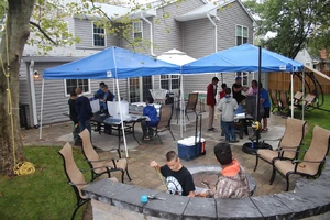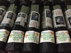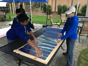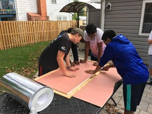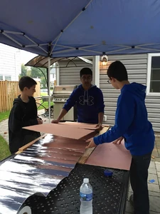 October 2016: Eagle Scout organizes a build of thirty solar cookers for Haiti - For his Eagle Scout project, Russell Desrosier of Fairfax, Virginia, USA, arranged for his Boy Scout troop to build thirty Haines Solar Cookers for Haiti. In the group photo, Russell in the one in the funny hat made from a circular cover. Russell plans to deliver the cookers in January, 2017 to recipients in Haiti as part of a project organized by WeCareToShare, Chantal, a medical-dental relief team that has been working in Chantal, Haiti since the 2010 earthquake. Chantal is a rural rice-farming village approximately 250 km from Port Au Prince on the Tiburon Peninsula. The team obtained a grant from Rotary District 7610 to improve a kitchen at one of the Chantal schools with almost 900 students in grades K - 12. The group has been consulting with solar cooking experts Mary Buchenic and Sharon Cousins, and plans an intensive one-week workshop on solar cooking for the village. They'll be teaching the school cooks to use solar cooking as well as teaching adults from the village.