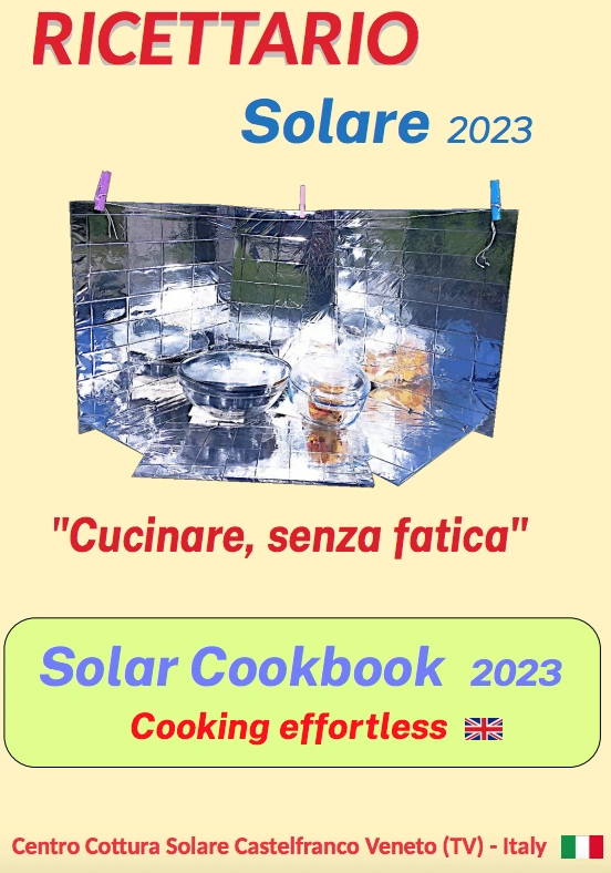 - June 2023: Castelfranco Veneto is a solar cooking center founded by Davide Milani in northern Italy. Members shared their recipes, and created this community-based solar cookbook in PDF format, free for all to download and use. Conveniently, the cookbook is written in Italian with companion text in English. Have a look, and maybe pick up a little Italian along the way. Download a copy