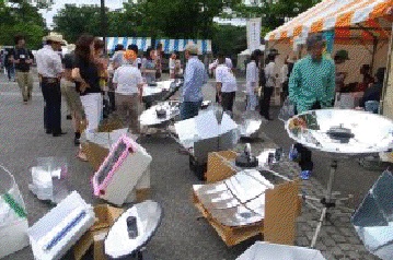 - June 2012: The JSCA participated in "Eco Life Fair 2012" held on June 2nd and 3rd at Yoyogi Park in central Tokyo. The fair was sponsored by the Ministry of the Environment, and was attended by 66,000 visitors. We exhibited many types of solar cookers and demonstrated solar cooking in the "Solar Zone" created for the first time this year. We cooked rice, made popcorn, and baked cakes and cookies.