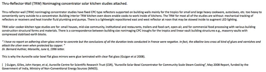 - NEW: November 2025: Thru-Reflector-Wall (TRW) Nonimaging concentrator solar kitchen studies for the Tropics (Image credits: Joel Goodman)