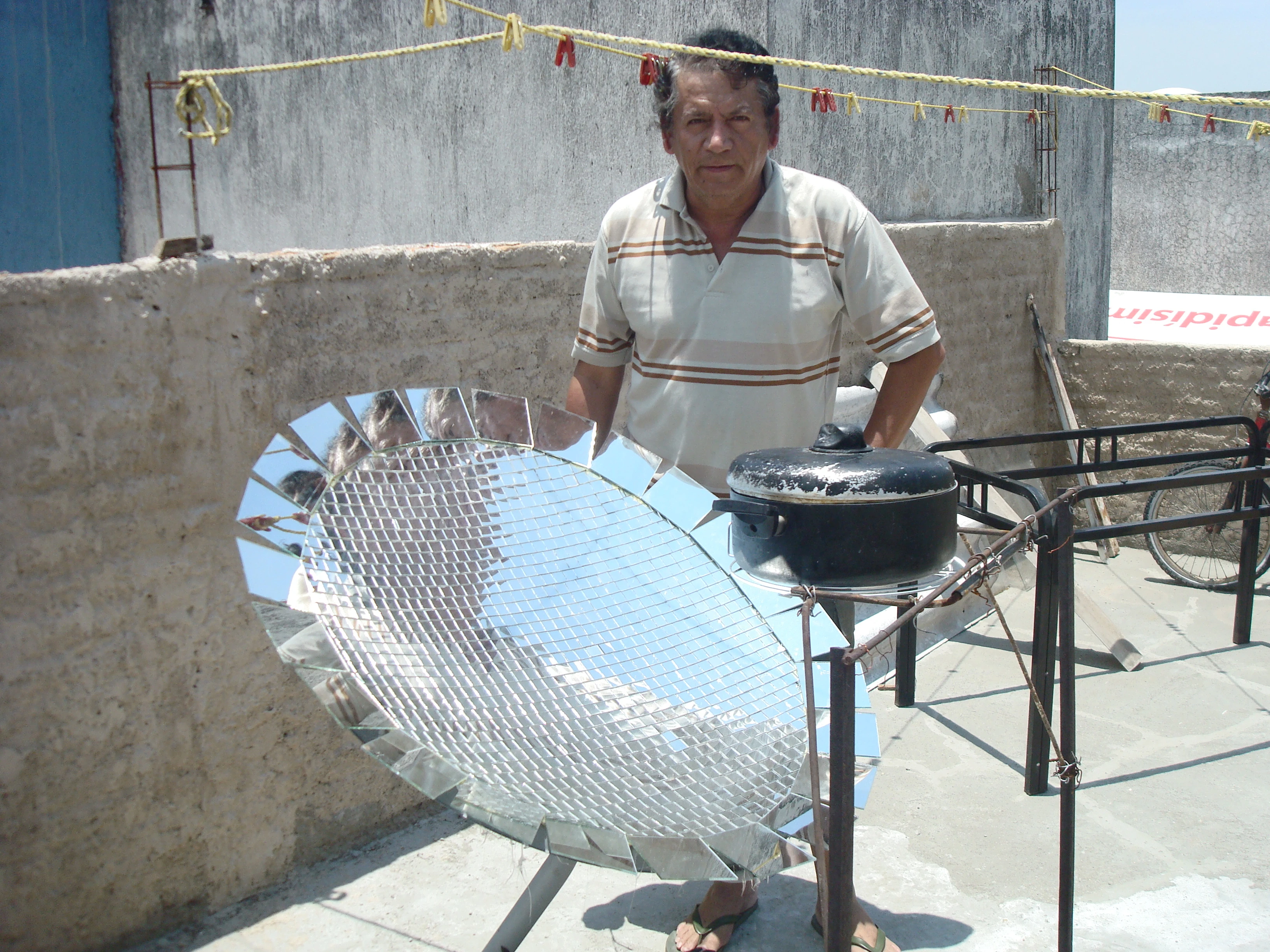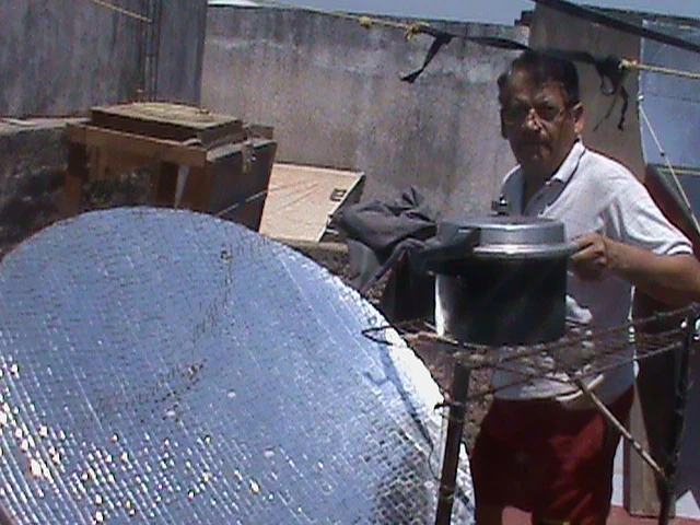 Hola!, soy el profesor de Fisica Juan Antonio Rubio Castro desde Guadalajara Jal. Mexico. He continuado construyendo hornos solares para mi uso personal utilizandolos continuamente en mi casa, tambien he enseñado a mis alumnos de la secundaria Mixta 3 del Alamo Industrial en San Pedro Tlaquepaque Jalisco a construirlos, ellos los utilizan en su casa para cocinar ayudando de esa forma a cuidar del medio ambiente. Se empezo a cocinar a las 10 am. El pollo duro poco menos de 1 h 30 m, el frijol duro 5 h pues no se remojo la noche anterior. Las manzanas se cocinaron en 1 h 30m tambien, las lentejas duraron 2 h 30 m tambien no se dejaron remojar.Aqui dejo estas imagenes y videos de hornos que he fabricado.