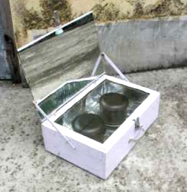 Sankha Subhra Datta has attempted to reduce the cost of a conventional wooden solar box cooker. The cooker is very appropriate for rural applications. Its easy construction reduces cost of labor, and allows it to be built by semiskilled village artisans by using simple hand tools and with locally available raw materials.