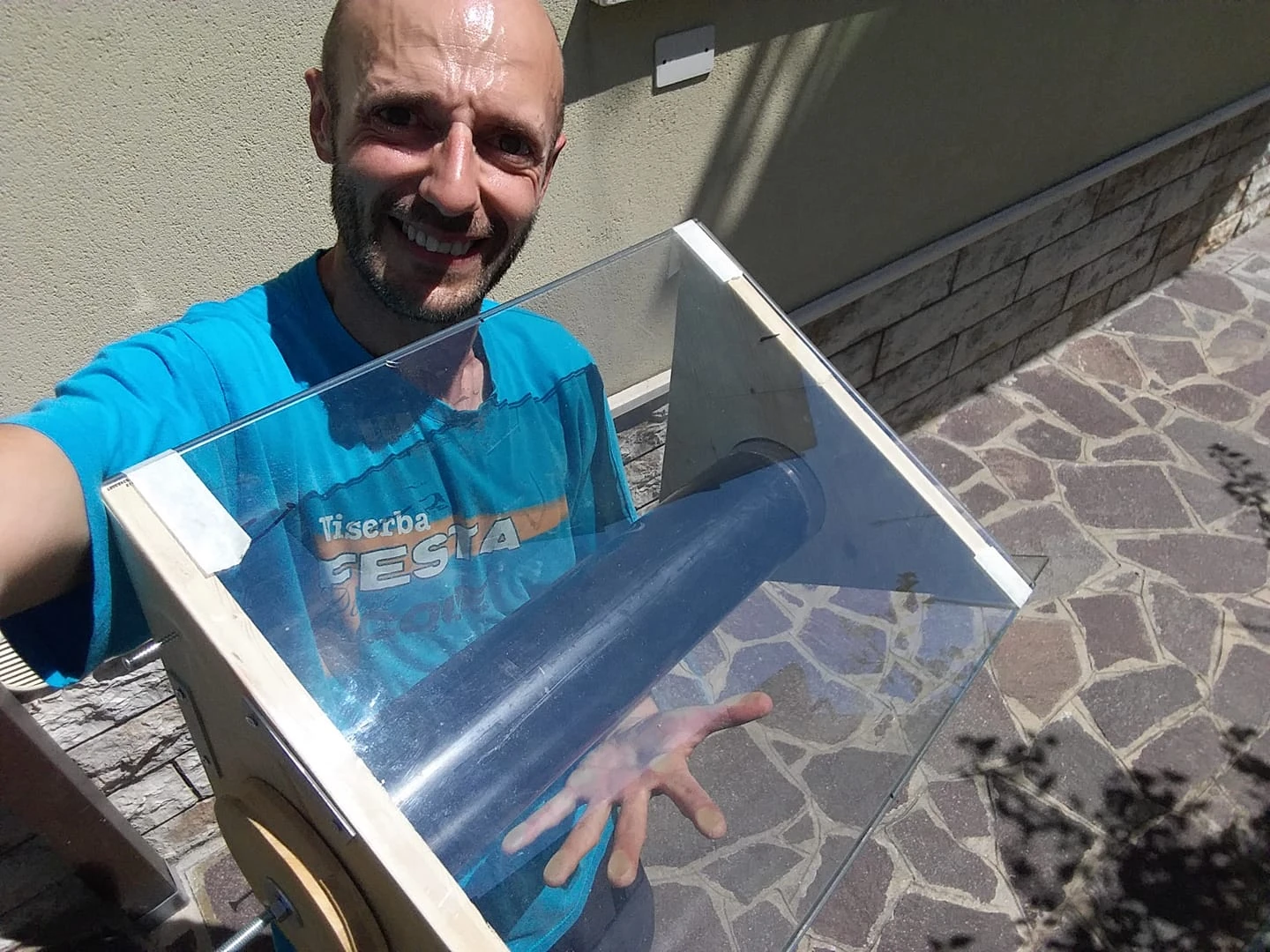 Matteo Muccioli With the prototype of Newton Solar Oven 3.0