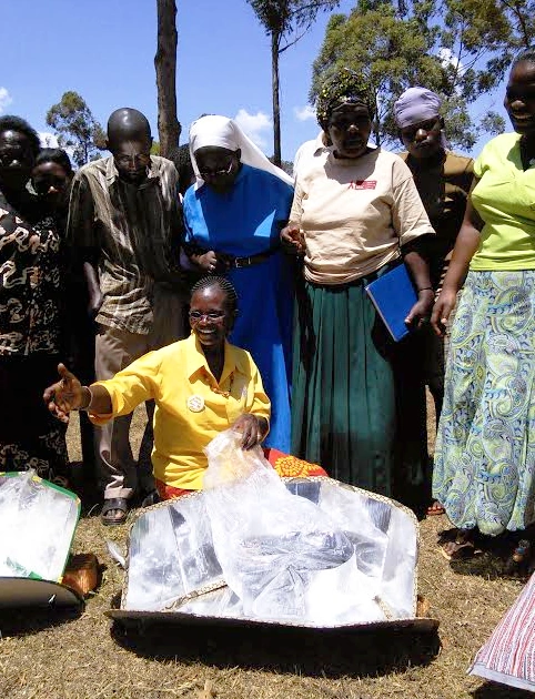 - September 2013: Faustine Odaba presents solar cooking and haybasket use to a poor Nairobi village in Kenya.