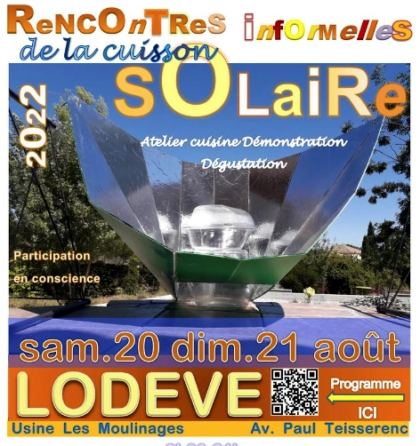 - 20-21 August 2022: Solar cooking gathering - An informal get-together for solar enthusiasts and solar cooking newcomers in Lodève, France. Click on the image for more information..