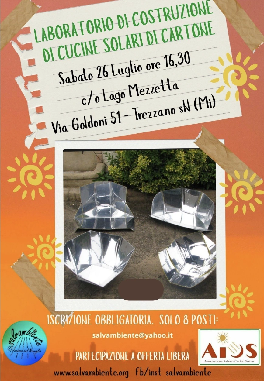- Saturday 26th July at 4.30pm (Milan): Solar cooker construction workshop