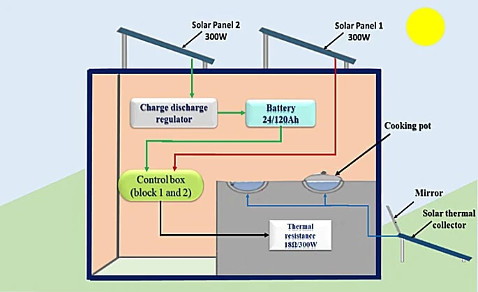 A photovoltaic-thermal (PV-T) hybrid solar kitchen is a cooking system that integrates both photovoltaic (PV) and thermal (T) solar technologies to provide electricity and heat simultaneously. These systems are designed to maximize solar energy utilization for household cooking and related needs.