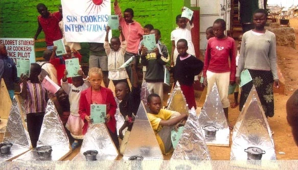 February 2011: Student success shows independent spread of solar cooking. The Eldoret Student Projects in Kenya, spearheaded by Camily Wedende and aided by long-distance advisor, Sharon Cousins, who serves on the Solar Cookers International board as well as working as an independent promoter, took an important step in that spread with a student team who not only learned how to cook with sunshine but also learned to take a creative and scientific approach to solar cooking. Students researched existing solar cookers—an assignment made possible by the Solar Cookers World Network site on Wikia—then put their heads together, combined ideas, and came up with new ideas to try. They performed comparative tests on an existing model and two of their prototypes. While all three reached cooking temperatures, one innovation showed the strongest performance at their location. The team has named their new design the Panel Stove Cooker. All twenty students built durable Panel Stove Cookers to take home to the camps where they live, where they have been using them to prepare food and [pasteurize water] for their families and keeping records of their progress and experiments, amazing the neighbors who stop by to see food cooking in a stove powered by sunshine, a stove that children in their community helped to invent. The entire neighborhood has become more interested in solar cooking due to this project's success. At an upcoming ceremony, students will receive certificates of achievement and other rewards and honors, to celebrate their successful science project. Some of the local media have said they will attend. Camily and the team hope that other schools and clubs can use the example of their pilot project to help more youth become scientists for solar cooking, to aid in the spread of this bright idea whose time has come.
