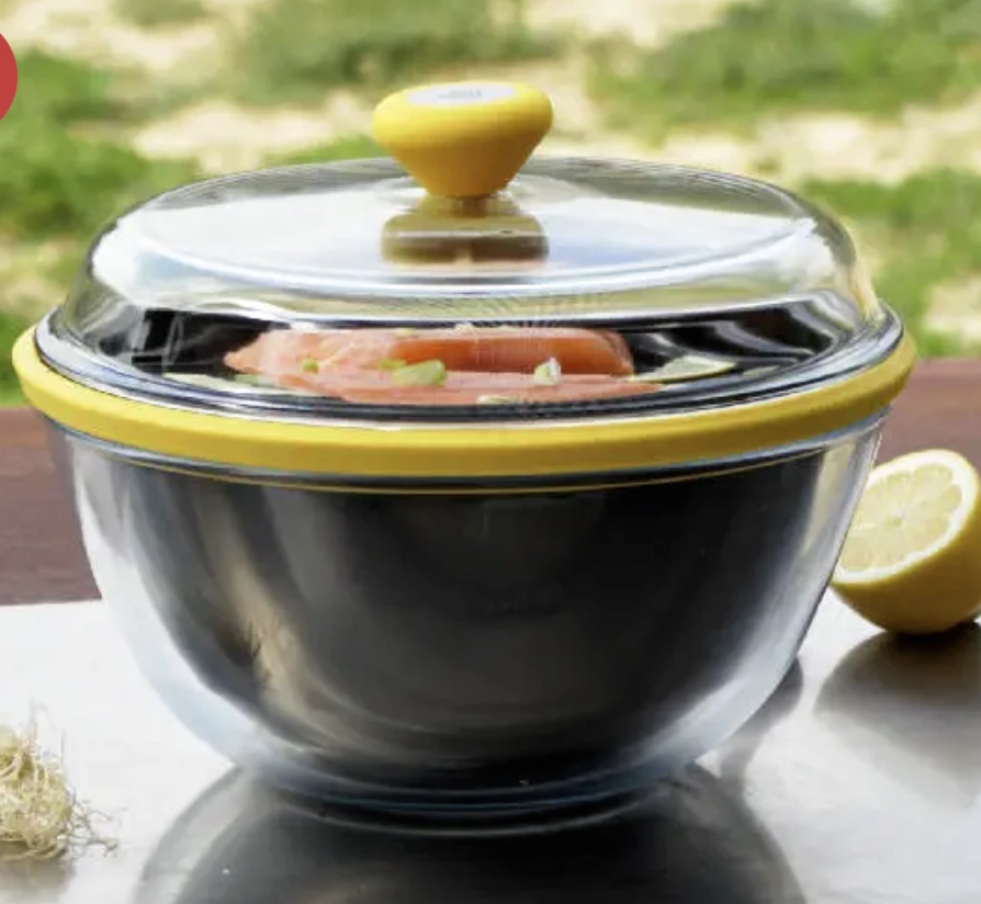 COSMO is universal because it is designed to adapt to all types of solar ovens: whether for gentle cooking, steaming, or grilling, COSMO guarantees exceptional performance, up to 250°C, for optimal cooking of all your dishes. Its "pot" design allows you to create your favorite recipes, while providing increased thermal efficiency thanks to its insulating air gap. With its 2-in-1 design, COSMO combines a pot and a frying pan in a single product, suitable for all types of cooking. Its reversible frying pan, which doubles as a lid, allows for double cooking. You can therefore prepare large items like a whole chicken or even brioches. The use of high-quality materials (glass, enameled steel, silicone, stainless steel) guarantees COSMO impressive longevity, while optimizing heat distribution for even and fast cooking.
