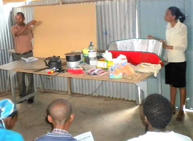- January 2015: SCA in Uganda continues to increase its sales of Integrated Solar Cooking (ISC) products. The objective is to distribute 10,000 ISC cooking appliances per year. This includes parabolic reflectors! SCA operates independently from SCN-KoZon. New construction in Biharwe continues to be delayed. SCN-KoZon is sponsoring this new construction. HoAREC works together with 6 NGOs on the construction of 20 centres. In six of the 20 centres, CooKits, hay baskets and WAPIs will be produced. Nine centres have been completed of which six are ready to start. Fikirte Regassa, SCN-KoZon's representative at HoAREC's is making tremendous efforts in assisting the work of the NGOs. This includes training sessions that she organises in the provinces where the centres will soon start production and sales. She also carries out many coordination tasks. Awara Amba has now produced enough ISC products to start focusing on sales. NGO ORDA is currently finalising its advisory tasks, including the organisation of a meeting with all Awara Amba authorities that will in future support the market development efforts.