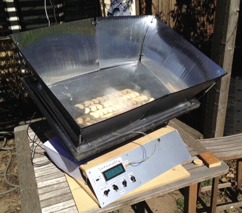 The Solrmatic features thermostats, time delay, timed cooking, and web monitoring, allowing you to cook almost everything you normally cook in a traditional oven. The Solrmatic has cooked leg of lamb, brisket, veggies, bread, cookies, bacon, and even dehydrated apples.