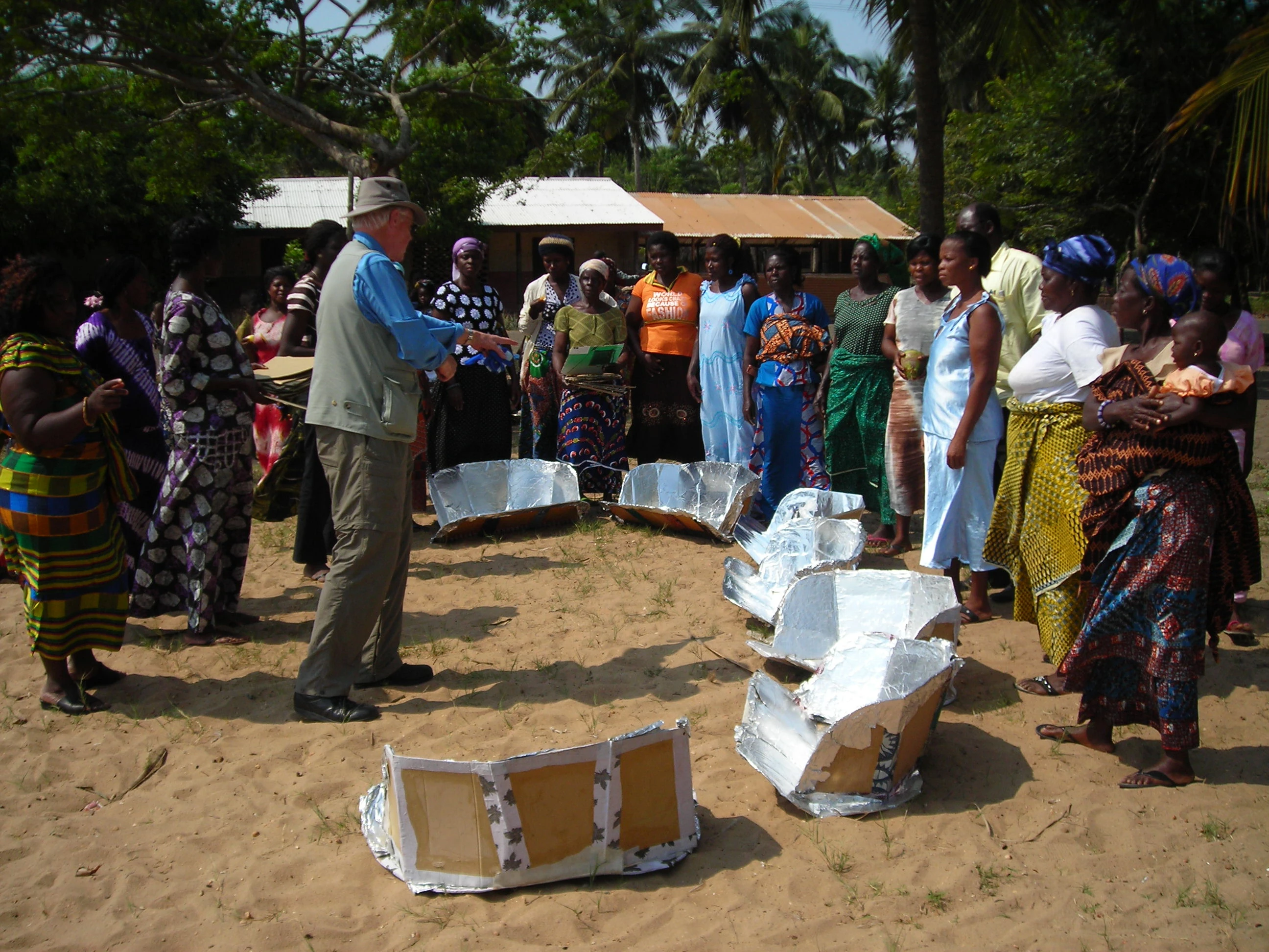 Stephen Pearson has been visiting Ghana, West Africa for over 30 years and still goes there three times a year helping an NGO. During his April 2009 visit he helped train rural ladies in the production of CooKit solar panel cookers. They can now make these unassisted. His recent efforts include the formation of SunLife, an NGO working in the area to introduce and promote solar cooking.