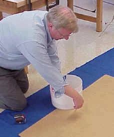 Steven Jones measuring cardboard to make a funnel cooker.