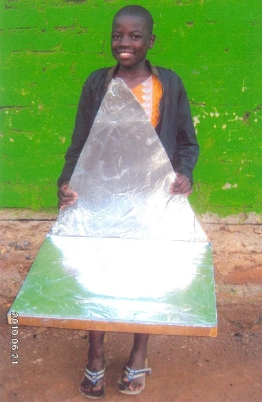- November 2012: Students with Eldoret Student Science Projects have designed a new solar cooker called the Hexagon Solar Cooker. The bottom portion of the cooker has six angles, with a two foot tall reflector at the rear. It a powerful cooker that cooks food in less than three hours with good sunshine. The students used paper cardboard, aluminum foil and glue. Each student earns the materials for their cooker by helping to build and test prototypes and keeping good records of their observations. New students have registered to begin making the new solar cooker design.