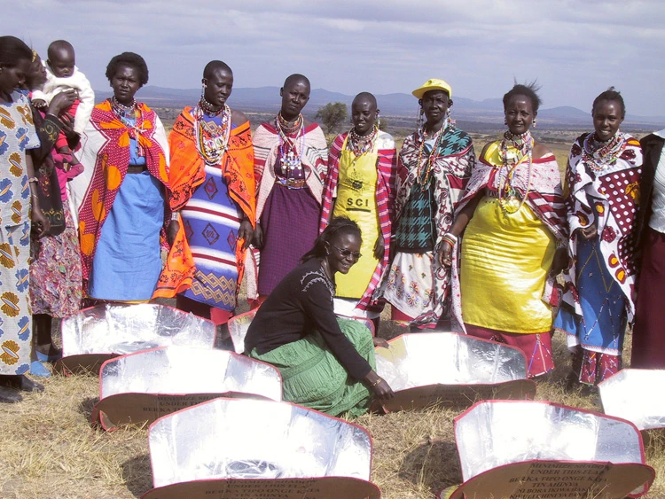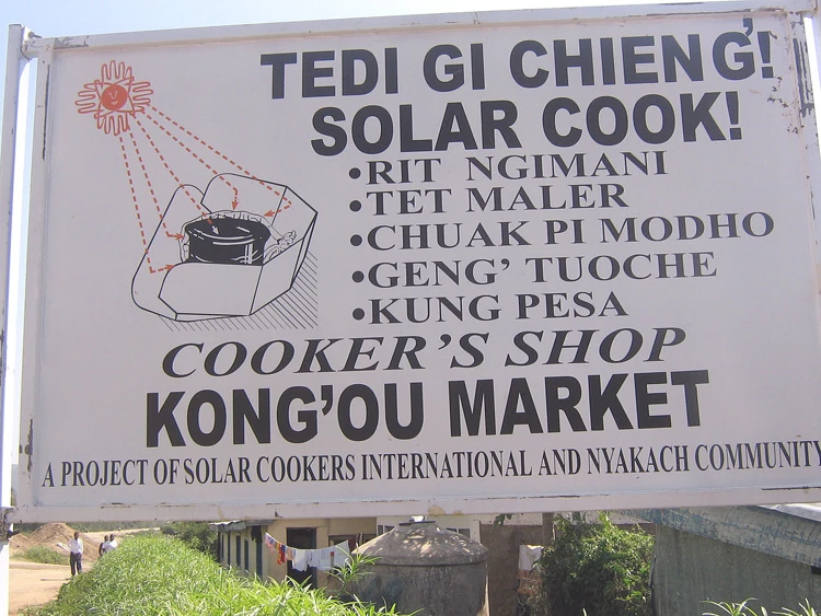 In 2003, Solar Cookers International (SCI) began a project called Sunny Solutions, which involved introducing and creating a market for solar cookers in four of the fourteen administrative areas of Nyakach, Kenya with 113,000, primarily of the Luo ethnicity. This community was selected from 150 applicants from all over Kenya. Near the equator and close to Lake Victoria, there is abundant and intense sunshine for over six months of the year. People are poor, there are few employment opportunities, agricultural and fishing resource bases are increasingly degraded, and wood and charcoal have become scarce and very expensive. The construction of a hydro-electric dam is attracting outsiders and bringing some hope of development, especially to those in Nyakach, despite the fact that many cannot afford to pay for electricity lines, let alone electric stoves. The Nyakach area has been ravaged by the AIDS pandemic and has poor roads due to decades of neglect by the Moi government. Eating habits in this area are ideal for solar cooking – most foods are boiled and meals are traditionally eaten at mid-day and in the early evening. A favorite local staple, omena (minnows), is considered most tasty when solar cooked. Sixteen trainees were selected in May 2003 from 16 women’s groups, with fifteen attending the training workshop in June 2003. Most remained and new ones added, with a total of twenty-three formally becoming solar cooker vendors in July 2005.
