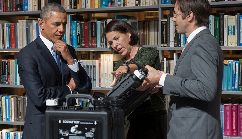 ![]() While visiting Stockholm, Sweden, in September 2013, President Obama asked for a visit to the Royal Institute of Technology KTH to see the latest research in energy solutions, research, and innovation. Petra Wadström, inventor of Solvatten, a solar water pasteurization system, was given the opportunity to present the unique device and demonstrate how it is used around the world to improve health, empower women, and lower CO2 emissions. Swedish Prime Minister Fredrik Reinfeldt also attended the presentation, acknowledging the technology as a solution for global challenges.