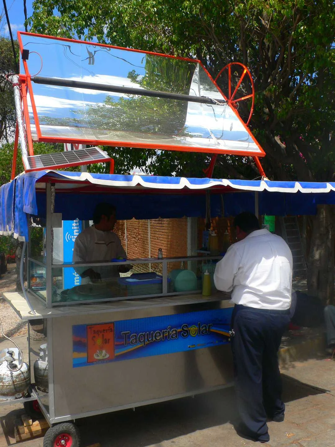 Taqueria Poncho is the first solar powered street vender cart to do business on the streets of Oaxaca, Mexico. The inventor of the system is swiss engineer, Michael Götz. The vendor who operates the cart is Alfredo Garcia Martinez.