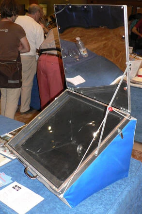 This lightweight, ULOG-style solar cooker is designed for portability.