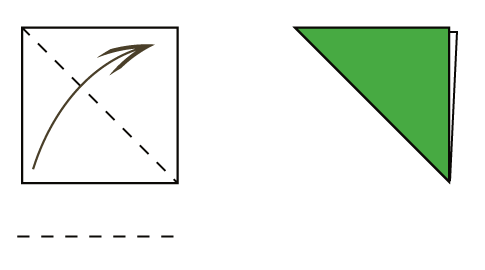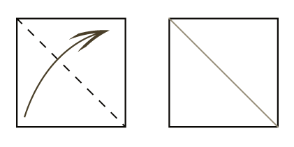As you can see from the illustration on the left, if you start with the colored/patterend side of the paper facing down away from you, valley-folding a square sheet of paper diagonally will result in a triangle with the patterned side showing.