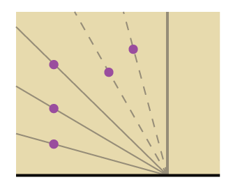 Uzante longan rekt-randon (kiel metro- aŭ jardobastono), allinigi la punkto kie kruciĝas la 25 cm linio al la bordo de la kartono kaj la unua 15°-a punkto. Desegnu la faldolinion. Allinigu la kruĉpunkton de la 25 cm linio kaj la dua 15°-a punkto kaj refaru. Desegnu la tria faldolinion same.